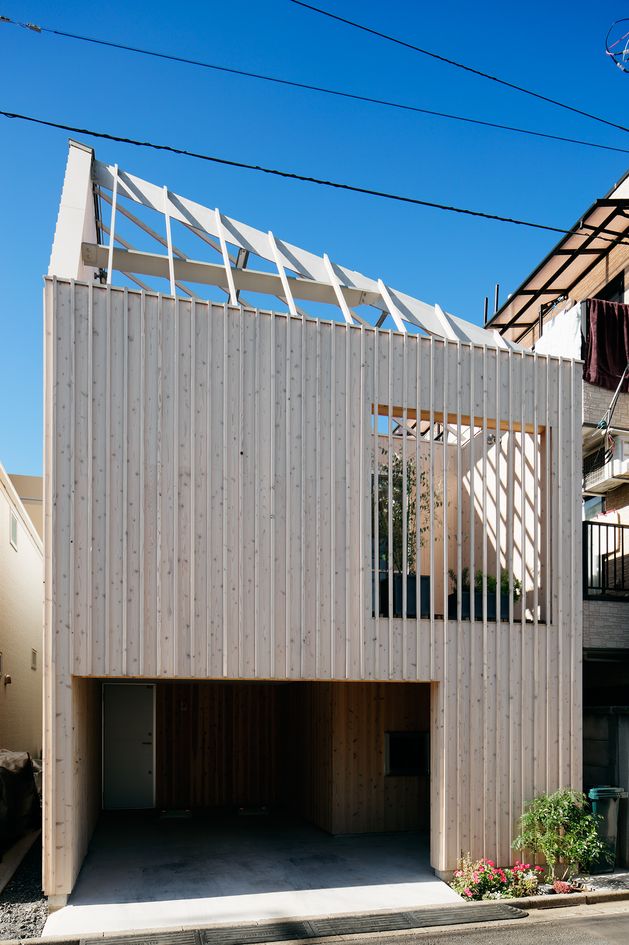 駒沢公園に近接して立つ住宅。狭小敷地でいわゆる10坪ハウスである。