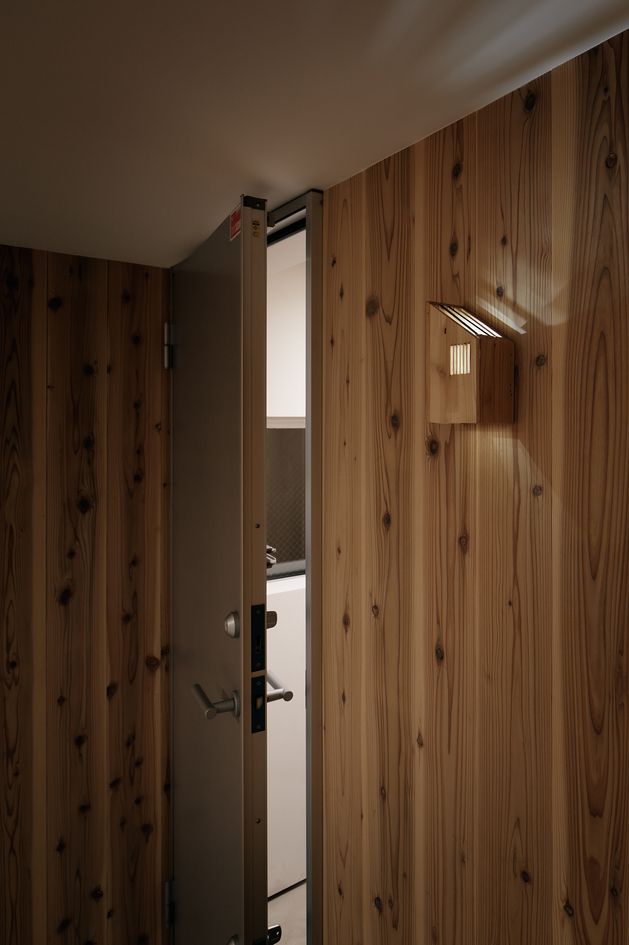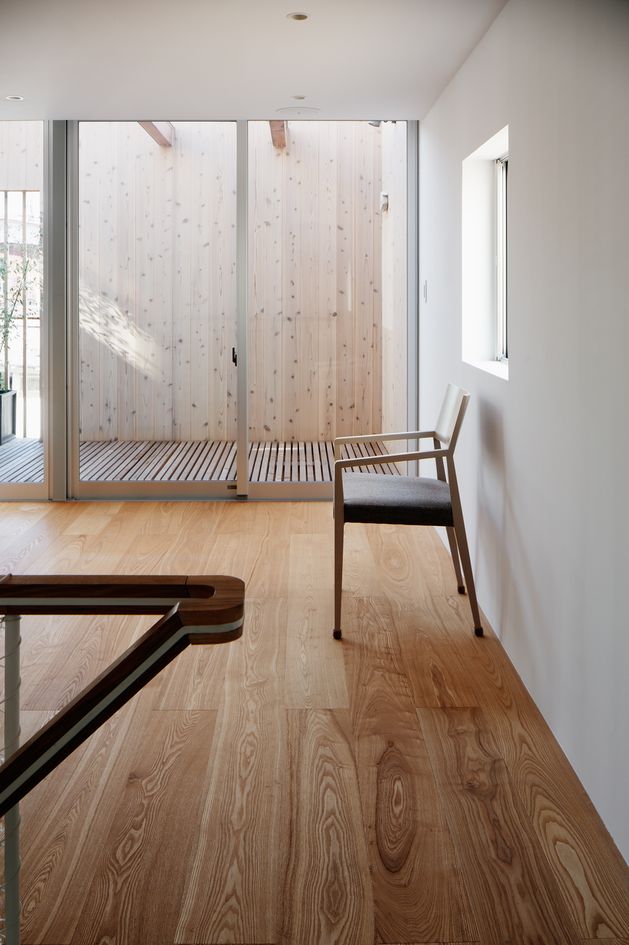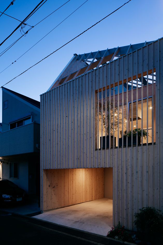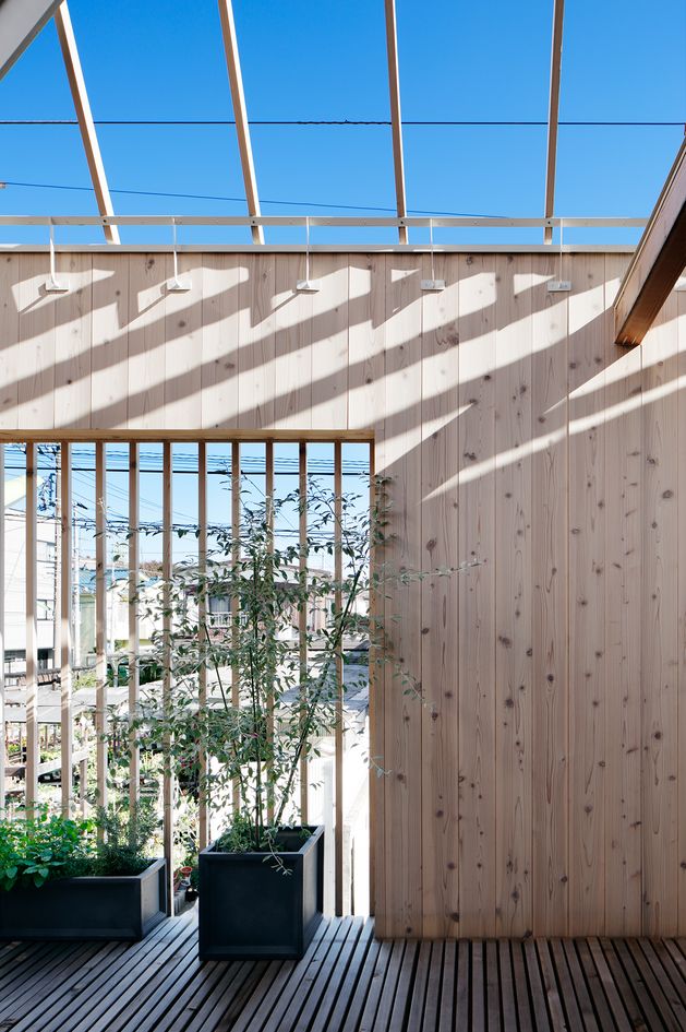 ルーバーはお隣さんへの目隠しとしてや面格子として防犯上の機能性も併せ持ち、建て込んでいる都市部の住宅地でも最大限、プライベートな外部空間を感じることができる住宅を目指している。