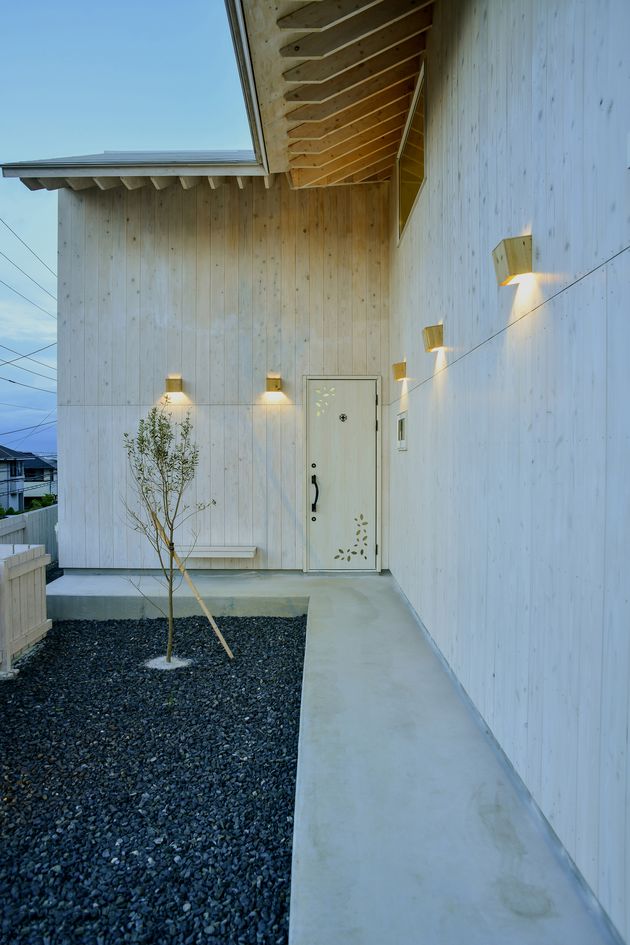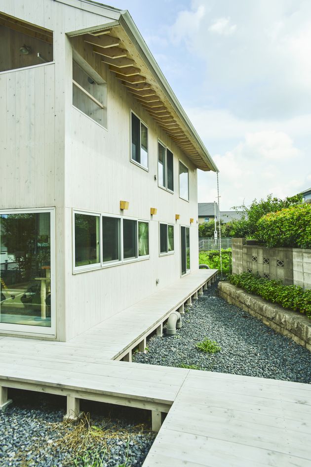 また、縁側の存在によって建物の基礎を覆い、建物の高さを低くみせ、親しみのある柔らかい佇まいとなっている。